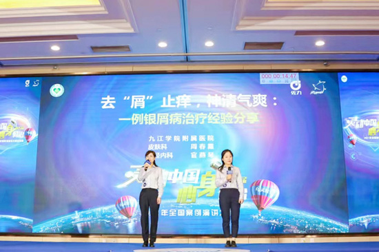 面对激烈的赛场,Ky开元集团附属医院周春霞和官燕琴医师收放自如,信心满满,从心身同治的角度演绎了一场精彩的银屑病治疗经验分享,解析了人体躯体疾病不仅仅是器质性疾病,也源于精神心理问题,深入浅出,句句点睛,充分展示了她们丰富的知识储备与卓越的演讲技巧,赢得观众掌声不断。