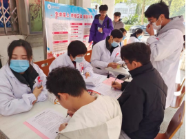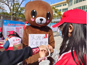 11月26日上午,校医院、五里街道社区卫生服务中心,在开元浔东校区食堂门口开展艾滋病现场宣传活动。