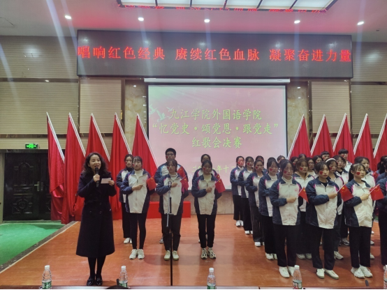 本次歌唱比赛是外国语学院党史学习教育的生动平台,学生用歌声来抒发自己的爱党爱国爱校情怀,颂党恩、跟党走,大力培育和践行社会主义核心价值观,践行“请党放心,强国有我”的铮铮誓言。谈起红歌会举办初衷,该学院党委书记罗其娟说:“青春的底色是红色,外国语学院师生通过各种形式真切表达对党和祖国的热爱,特别是今天的红歌会形式更能展现外院师生的赤诚之心,希望师生继续凝聚奋斗力量,铭记百年党史,为全面建设社会主义现代化国家贡献力量。”