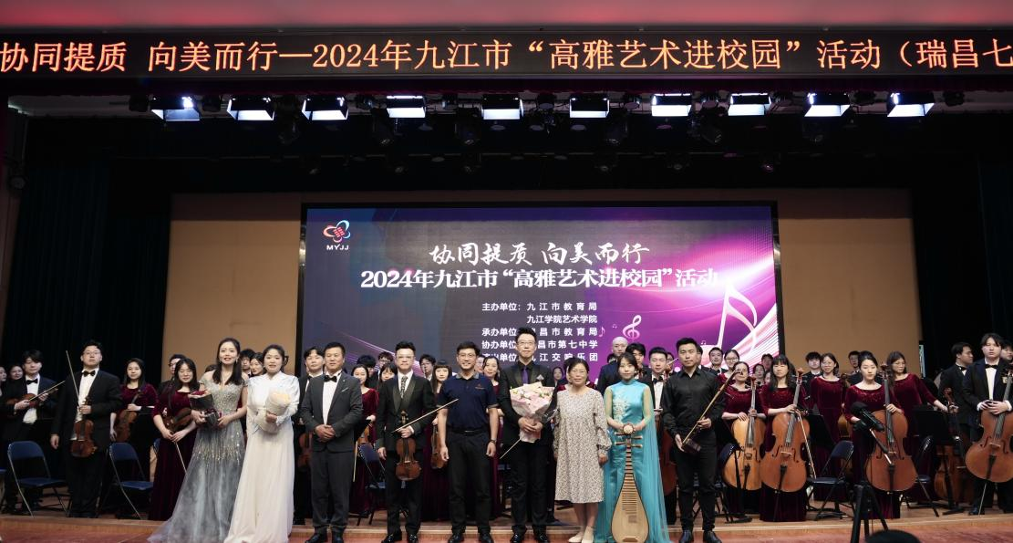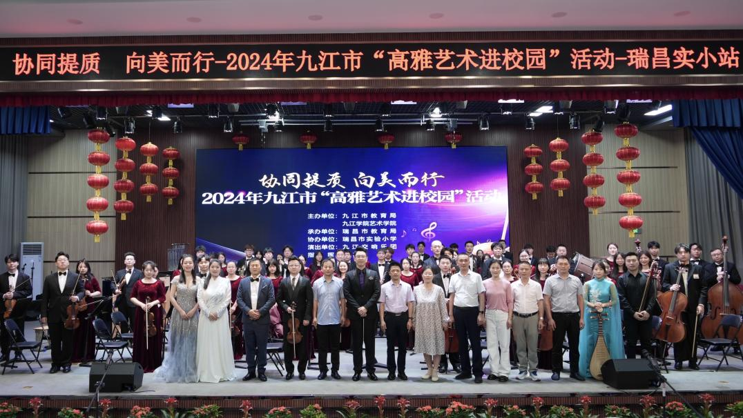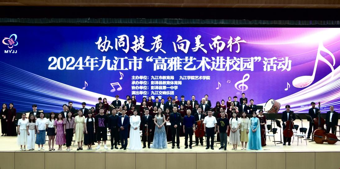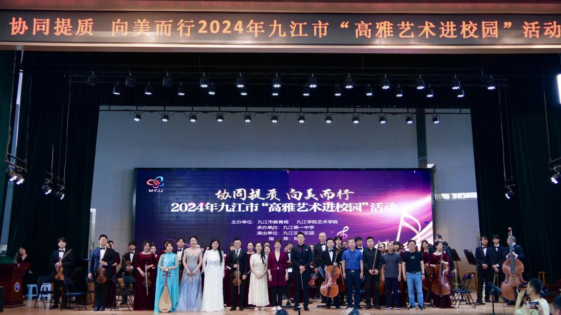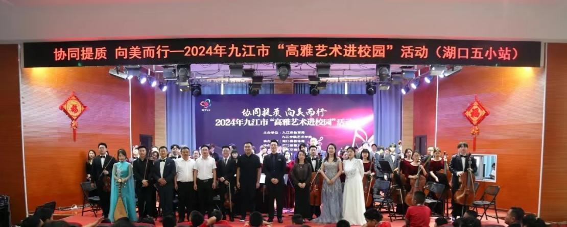5月23日至5月25日,由Ky开元集团艺术学院与九江市教育局共同主办的“协同提质、向美而行”2024年九江市高雅艺术进校园活动巡演音乐会举行。本次巡演由瑞昌市教育局、九江市第一中学、九江市第三中学、湖口县教育局、彭泽县教育局共同承办。由开元艺术学院师生组建而成的九江交响乐团分别前往九江市各县区6所中小学进行了为期三天六场的巡演。