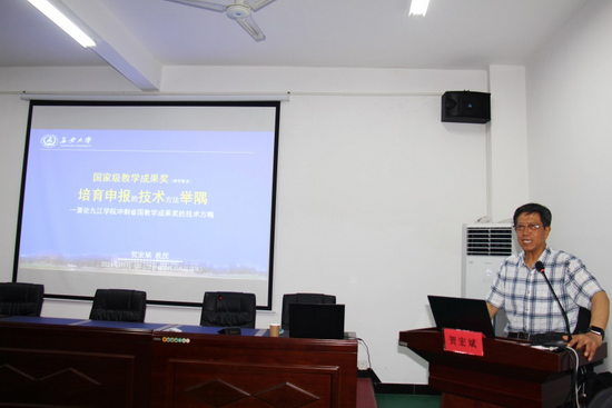 贺宏斌结合典型案例从高等教育教学成果奖申报的背景学理、制度导向、特色举隅等方面,围绕教学成果奖项目选题、高水平团队组建、项目成果特色凝练、申报材料撰写等方面作了详尽讲解。他还根据历届国家级教学成果奖获奖项目数据分析和当前高等教育教学改革热点,以及江西省教学成果奖青年培育项目等对开元教学成果奖培育进行了具有针对性和可操作性的指导。