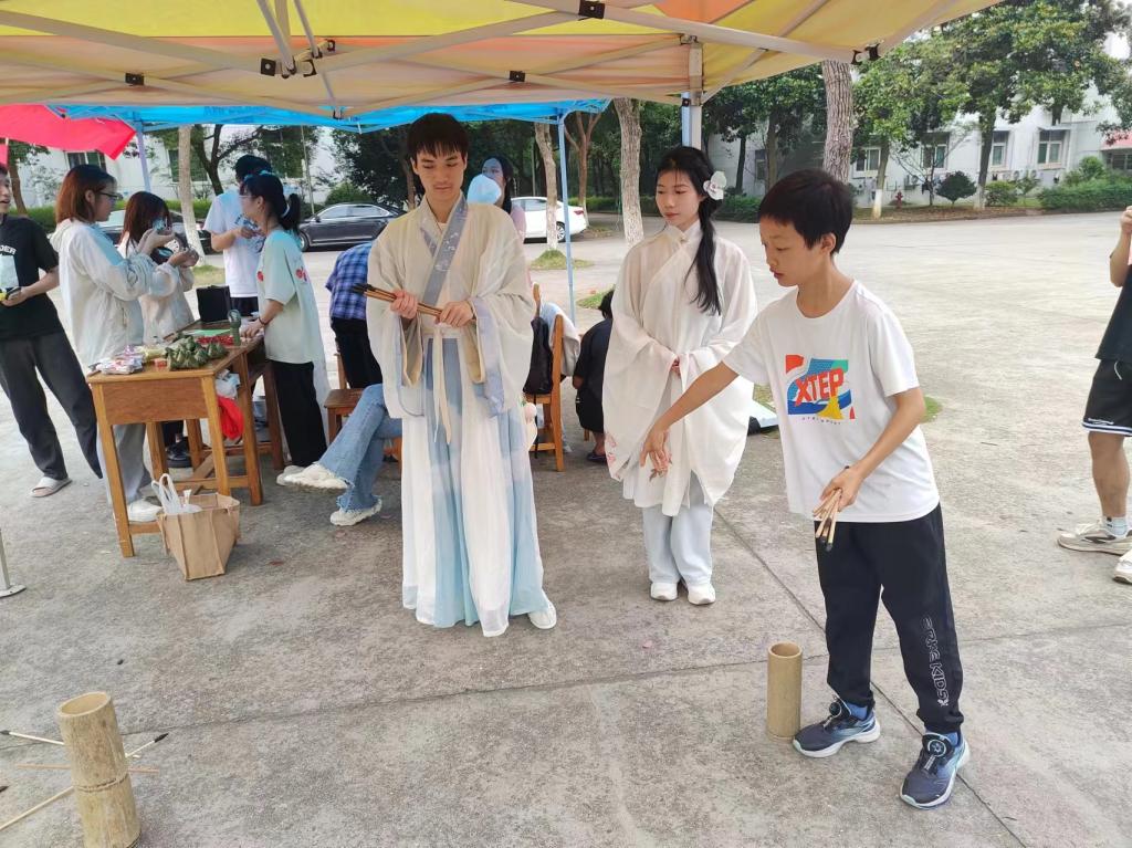 在端午诗词朗诵环节,濂溪诗社的同学们用真挚的情感和优美的声音朗诵了一首首关于端午节的诗词,让现场观众仿佛穿越到了古代,感受到了古人对端午节的热爱和敬仰。同时,这一环节也激发了同学们对传统文化的热爱和传承意识。
