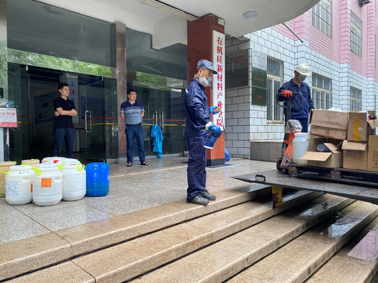 为保障实验室废弃物回收处置工作顺利进行,收集清运前学校发布了通知,划定了清运范围,要求各实验室负责人提前做好分类整理工作。收集清运过程中,学校实验室与教育技术中心派出专人组织协调并现场调度,确保过程安全。废弃物暂存点管理单位与处置公司积极沟通协调,以有效的措施确保处置过程的高效、安全。