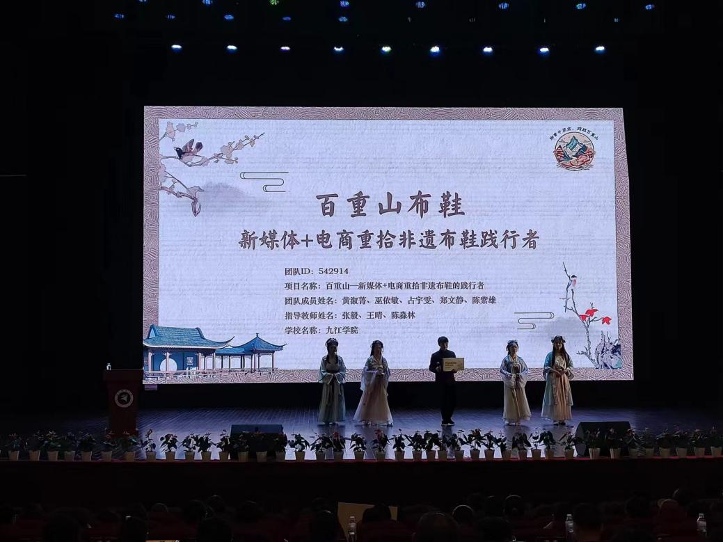 本次江西省赛规模空前,4000余支报名队伍经校赛激烈角逐,共计266支团队、13个小组、千余人次入围省赛,更汇聚了全国近百名专家参与赛事活动。来自管理学院黄淑菁、郑文静、陈紫雄、占宇雯、巫依敏五名同学组成的“做大做强小分队”学生团队将“庐山”、“鄱阳湖”、“爱莲说”等地域特色文化创新设计融入传统老布鞋,充分运用新媒体运营、直播带货、智能科技精准营销等多渠道营销方案,发现新途径,拓展新思路,在常规赛道凭借独特的创意、助力乡村振兴的社会实践价值斩获第十四届“三创赛”常规赛道省赛特等奖。张毅、王晴两位指导老师荣获江西省选拔赛“最佳指导老师”称号。