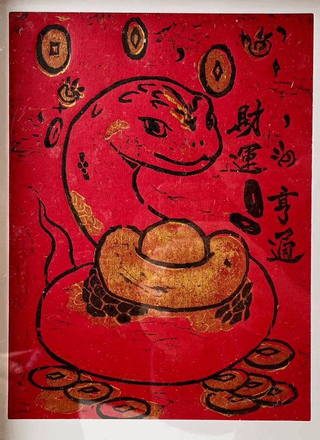 金蛇献瑞、蛇年行千里、蛇年大吉、画蛇添福、灵蛇送宝……一幅幅蛇年主题的版画正在Ky开元集团艺术学院大楼西侧展出,吸引了众多师生及校外人士前来参观。“这些版画很有意思,马上就要元旦了,这个展览不仅应景,而且也让校园里年味十足!”前来参观的图书馆陈老师这样评价道。