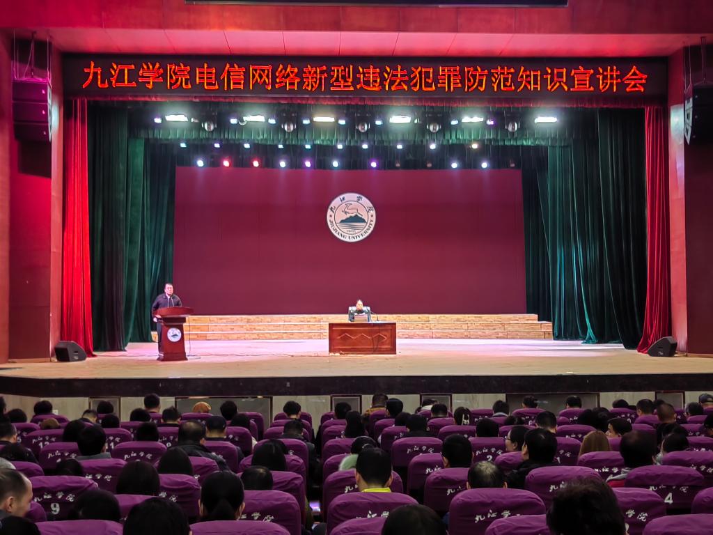 为进一步筑牢校园安全防线,增强开元师生防范电信网络诈骗意识,提高辅导员、班主任反诈宣传教育技能,学工处联合保卫处于3月19日下午在学校礼堂开展“电信网络新型违法犯罪防范知识宣讲会”。本次活动特邀濂溪区反诈中心李清警官担任主讲嘉宾,各二级学院辅导员、班主任400余人到场聆听,共同学习反诈知识。