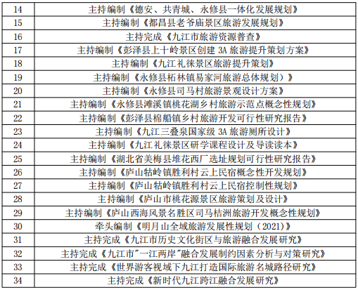 学院围绕国家战略与地方发展需要,以服务地方高质量发展为己任,教学相长、研学互促。“区域(城)村镇、产业经济、旅游发展规划设计团队”,高质量完成了“九江市旅游资源普查”“都昌县旅游发展总体规划”“九江市红色旅游发展规划”“九江市产业空间布局战略研究”“云南省产业空间优化布局”“武宁长水景区总体规划”等区域经济发展规划、区域旅游发展规划、乡村旅游景区设计、城镇发展规划等各类规划、方案100余项。“商务礼仪与文化传播团队”,积极开展地方文化研究,为九江市企事业单位、酒店、景区等开展礼仪、沟通、茶道、旅游营销、酒店服务等各类培训百余次,连续两年高水平完成九江市旅游产业发展大会讲解员培训服务。“遥感信息与国土空间规划设计团队”,完成“九江市浔阳区集体农用地和集体建设用地基准地价制定”“九江市全民所有自然资源资产所有权委托代理机制试点实施方案编制”等横向课题30余项。“江西传统村落研究团队”,深入200多座古村落,开展教科研、学生指导和古村活化等工作,获批国家级一流本科课程1门,省部级课题4项,出版专著3部,发表期刊论文10余篇,指导学生获省级赛事奖项4次,中国传统村落文化与实践课程虚拟教研室”获校级虚拟教研室建设立项。
