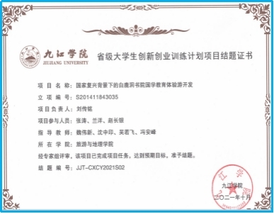 学院注重培养学生的创新创业精神和实践技能,连续四届在“江西省互联网+大学生创新创业大赛”、大学生挑战杯省级比赛中获得银奖、铜奖,1届入围国家总决赛。近年来,百余名学生在全国旅游院校专业服务技能比赛、“田家炳杯”全国师范院校师范生教学技能竞赛、江西省科技创新与职业技能大赛、挑战杯比赛、“互联网+”比赛、大学生创新创业训练计划等赛事中获得优异成绩。多个班级获省级“雷锋班”,市级“五四红旗团支部”等荣誉,多位学生获“江西省社会主义核心价值观先进个人”“中国大学生自强之星”等称号。近三年,共有111名学生继续攻读硕士研究生,学生参与教师科研项目200多人次,发表学术论文41篇,立项校级以上大创项目40余项。