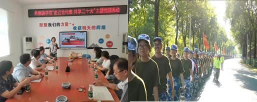 【两个结合】一是管理与服务相结合,完善管理育人、服务育人机制。坚持领导干部联系党支部、教研室及重点学生,精准帮扶解决学生需求。二是专业与实践相结合,依托“红外线行走课堂”、社会实践、志愿服务等活动,拓展实践育人平台。学院特别注重结合外语专业特色,组织学生服务地方国际赛事,组建外语志愿服务队,助力地方国际化发展。