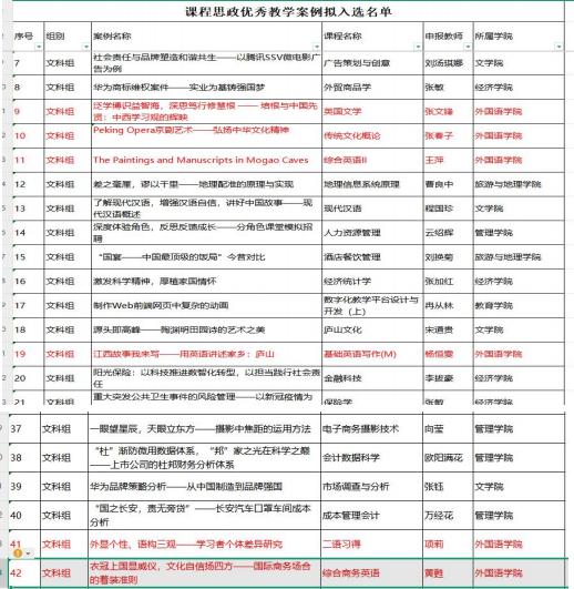 课程思政优秀教学案例入选名单