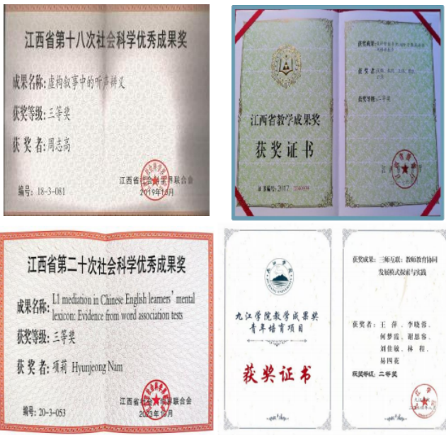 省级社科奖、省级教学成果奖、校级教学成果奖