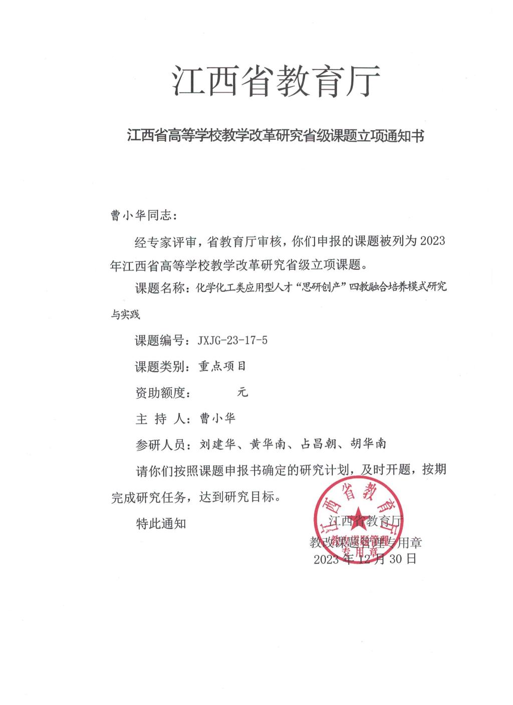 获批江西省教改重点项目