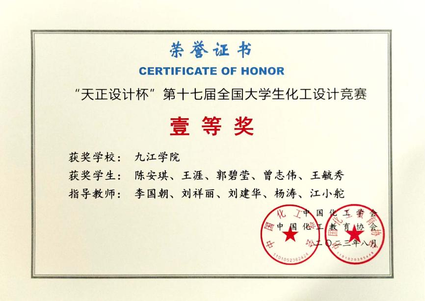 在第十六、十七、十八届全国大学生化工设计竞赛中获一等奖