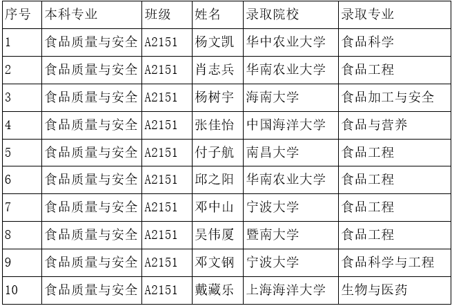 张佳怡(录取至中国海洋大学):“从大一开始,食品教研室的老师就对我们的发展十分关注,让班级同学共赴美好的未来。感谢四年来学院和学校提供给我们的资源和帮助,让我们在面对更高平台时充满底气。”