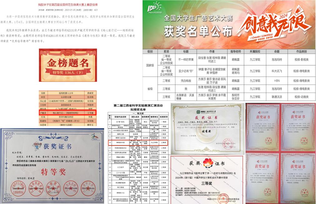 人才培养有质量。学院始终坚持“立德树人”根本任务,围绕培养高素质应用型人才的目标,深化教育教学改革,优化资源配置,提升人才培养质量。近年来,教育学院学子相继在“挑战杯”全国大学生课外学术科技作品大赛中荣获红色专项全国一等奖、江西省特等奖;在全国大学生广告艺术大赛中荣获全国二等奖、江西省一等奖;在中国大学生计算机设计大赛中荣获全国三等奖。百余名学生在全国高校商业精英挑战赛品牌策划竞赛、第五届中华经典诵写讲大赛、“笔墨中国”汉字书写大赛、中国大学生计算机设计大赛、全国大学生广告艺术大赛中获奖。学院毕业生综合能力受用人单位好评。