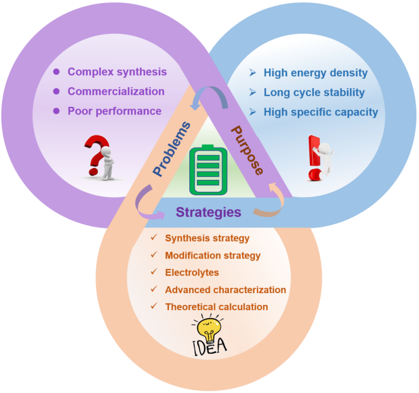 另外,本文还重点介绍了几种改性策略,包括离子插层、分子插层、复合材料和缺陷工程。离子插层可以稳定正极结构并改善其动力学,而分子插层可以提高整体导电性并进一步稳定晶体结构。复合材料的使用有助于防止正极结构的坍塌,从而提高导电性和电化学性能。缺陷工程在增强二氧化钒基正极的结构稳定性和电化学性能方面起着至关重要的作用。通过引入或控制缺陷,可以改变材料的晶体结构来改善其性能。此外,元素掺杂可以通过调节能带结构和提高离子扩散速率来优化电化学性能,而这可以通过将外来元素掺入二氧化钒晶格来实现。二氧化钒作为AZIBs的正极材料,需要从多个角度进行全面的研究和创新,才能实现商业化并进一步拓展其应用潜力。本文还系统的介绍了未来需要探索的关键领域,包括合成方法的创新、优化策略的改进、电解质的改进以及先进表征技术的开发。