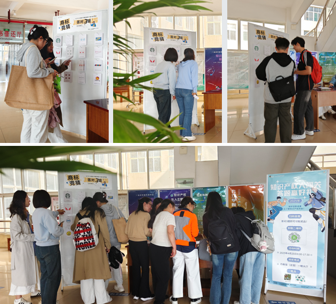 为普及商标权知识,中心推出“商标竞猜”活动,参与者猜对3个正确的商标名即可赢取定制奖品。4月25日上午八点,商标竞猜活动在图书馆一楼大厅拉开帷幕,竞猜展板挂有星巴克双尾美人鱼、KFC创始人肖像、苹果咬痕图标、微信对话气泡等十余个国内外知名商标。活动现场师生络绎不绝,积极参与商标竞猜的趣味互动,还不时爆发出阵阵欢笑声和讨论声,整个活动洋溢着轻松愉悦的求知氛围。“原来商标不仅是图形符号,更是企业文化与价值的浓缩!”一名参与的教师感叹。活动共吸引了200余人次参与,以寓教于乐的形式深化了师生对商标权保护的认知。