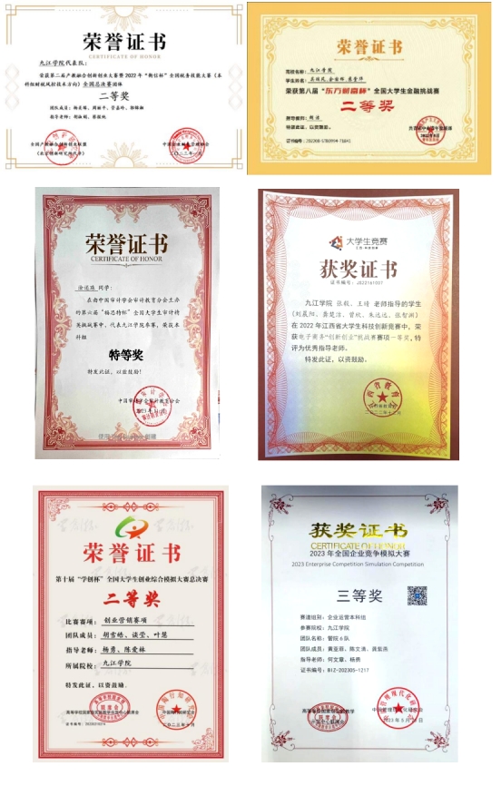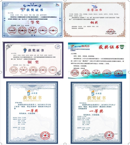 学生素质能力培养成效显著。五年来全院师生团队在全国、江西省创新创业计划训练项目中多次立项,在中国国际大学生创新大赛、“挑战杯”全国大学生系列科技学术竞赛、全国大学生电子商务“创新、创意及创业”挑战赛等各类学科竞赛中表现优异,共荣获国家级奖项149项、省级奖项202项、校级奖项113项。充分展示出学院在全方面育人与创新培养上的深厚实力。此外,学院每年组织学生参加暑期“三下乡”等社会实践活动,在获得多项荣誉的同时,学生们也切实锻炼了实践能力与社会责任感,为今后走向职场和社会奠定了坚实基础。