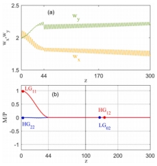 3.利用旋转椭圆抛物势阱,实现了拉盖尔-高斯和埃尔米-高斯光束在传输过程中可控相互转换,及其伴随轨道角动量的控制。