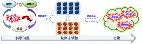 阐述了硼氮分子结构-聚集态-发光性能的构效关系,揭示了B-N单元精准调控材料聚集态、形貌以及聚集体激发态性能的关键机制,对深入研究聚集体对有机发光分子体系性能的影响具有重要的理论价值。