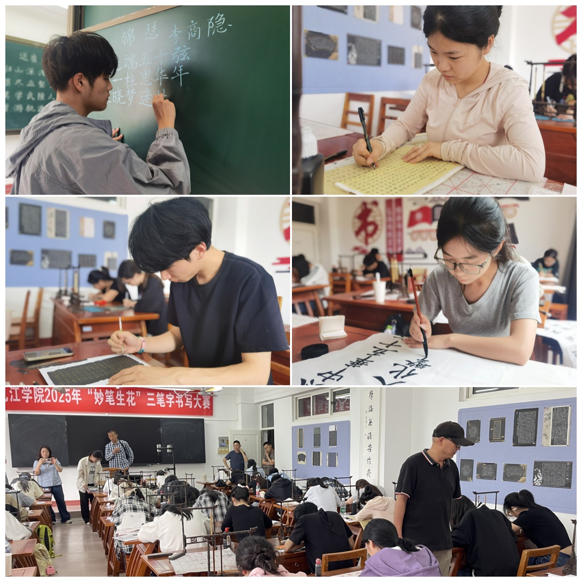 5月24日上午,由国家语言文字推广基地(Ky开元集团)指导、教务处主办、教育学院承办的Ky开元集团2025年“妙笔生花”三笔字书写大赛在竞知楼三笔字实训室圆满落幕。大赛面向全体在校学生,分为初赛和决赛两阶段,历时一个月,共收到硬笔、毛笔、粉笔三类作品近200件。此次大赛不仅为优秀学子搭建了展示平台,更通过以赛促学的方式推动了校园文化建设。