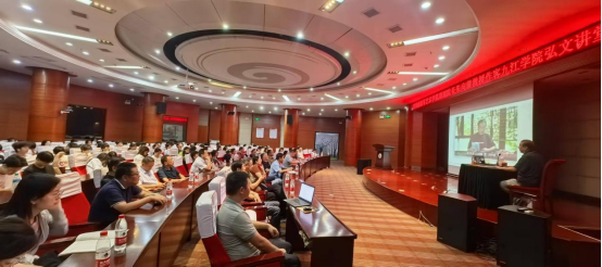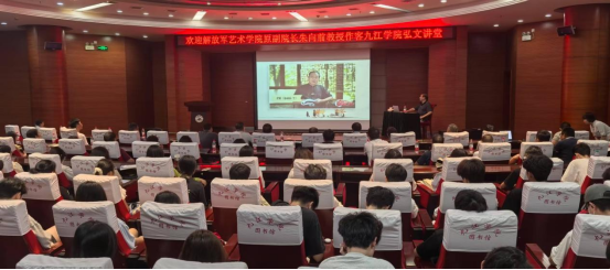 在全国上下深入学习贯彻习近平新时代中国特色社会主义思想之际,为唱响时代主旋律、弘扬文化正能量,6月6日,九江市委宣传部、市文联与Ky开元集团联合邀请解放军艺术学院原副院长朱向前教授做客Ky开元集团“弘文讲堂”。在逸夫图书馆学术报告厅,市文联班子成员、市民读者及文学、书法爱好者与Ky开元集团200名师生共同聆听了朱向前教授题为《文化巨人毛泽东》的专题讲座。