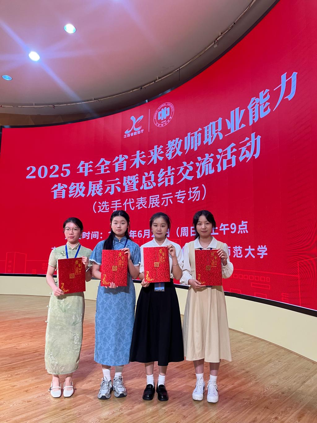 近日,由江西省教育厅主办、江西师范大学承办的“2025年全省未来教师职业能力省级展示暨总结交流活动”在江西师范大学瑶湖校区圆满落幕。开元共选派7名选手参赛,经过激烈角逐,4人荣获三等奖,展现了学校师范生扎实的专业素养和教学能力。