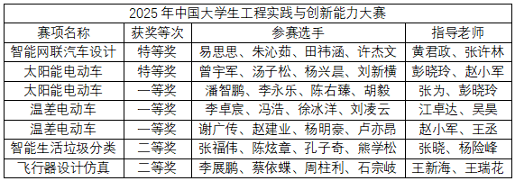 本届大赛以“交叉融合工程创新育新质,立德树人强国建设勇担当”为主题,构建了覆盖新能源车、智能+、虚拟仿真三大赛道的立体竞技体系。从太阳能电动车竞技到企业运营仿真决策,从飞行器仿真设计到生活垃圾智能分类,九个赛项直指新质生产力前沿领域。我院学子在新能源车、智能+传统赛项保持领先地位的同时,在今年首次参加的虚拟赛项也获得突破,获得特等奖1项,二等奖1项。