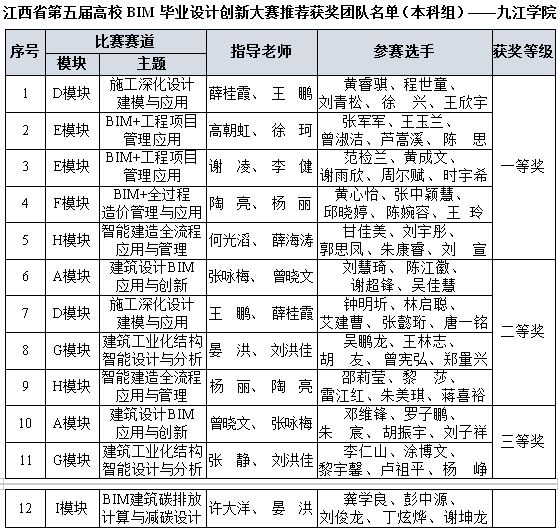近日,江西省第五届高校BIM毕业设计创新大赛圆满收官。开元建筑工程与规划学院学子发挥出色,一举摘得一等奖5项、二等奖4项、三等奖3项,以总积分全省本科组第一的优异成绩,荣获大赛最高荣誉—本科组团体一等奖,实现了在该项赛事上的历史性突破。