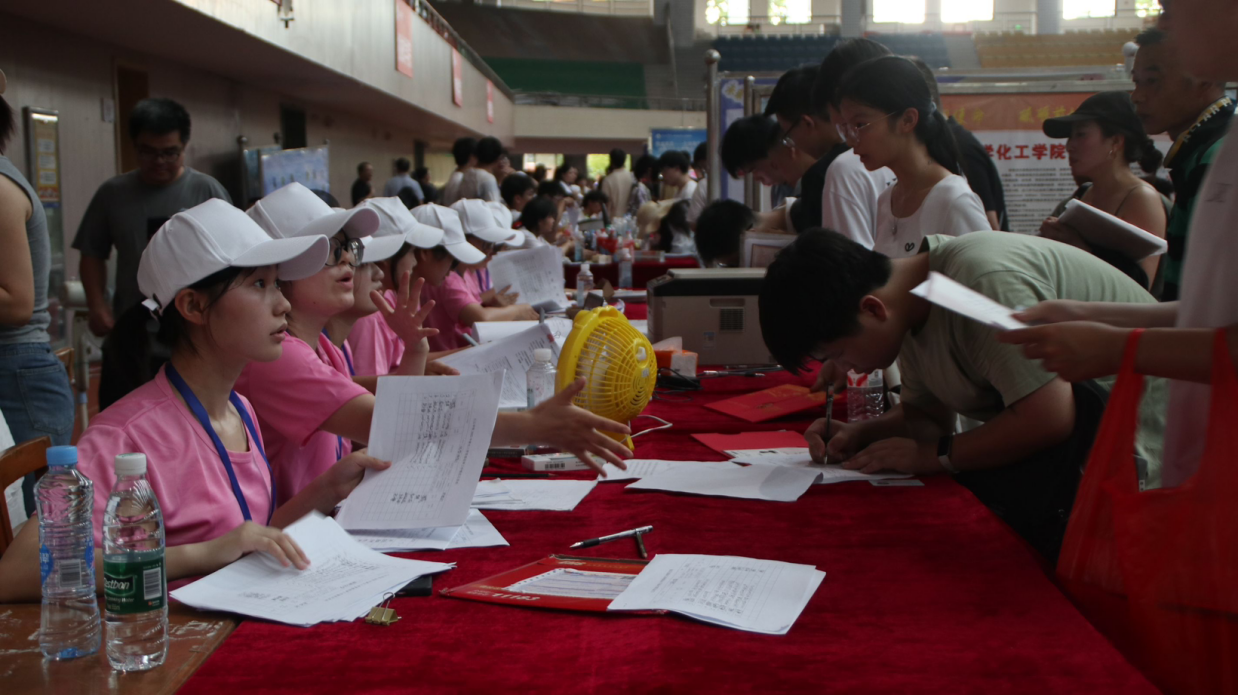 “同学你好,是哪个专业的?请来这边报到!”一批批大巴车缓缓驶入校园,各二级学院的助导和志愿者们早已等候多时,高举着指示牌引导新生与家长有序前往报到,一边细心核对新生信息,一边主动协助安放行李。“从踏入校园的那一刻,我就感受到学校热烈的迎新氛围。学长学姐和工作人员热情地引导,耐心地解答各种问题,驱散了我们面对新环境的紧张与不安。”化学化工学院新生李凯文同学兴奋地说道。