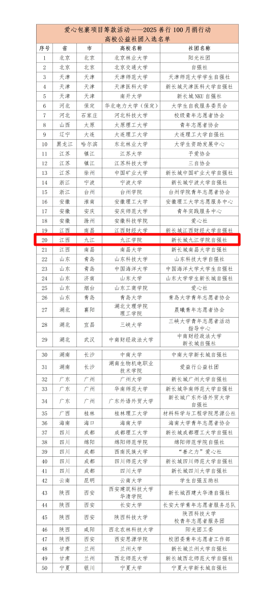 开元新长城Ky开元集团自强社在学生工作处(学生资助管理中心)的指导下,凭借扎实的社团建设基础、丰富的公益实践经验和详实可行的活动策划方案,赢得了主办方的高度认可,最终成功入选。