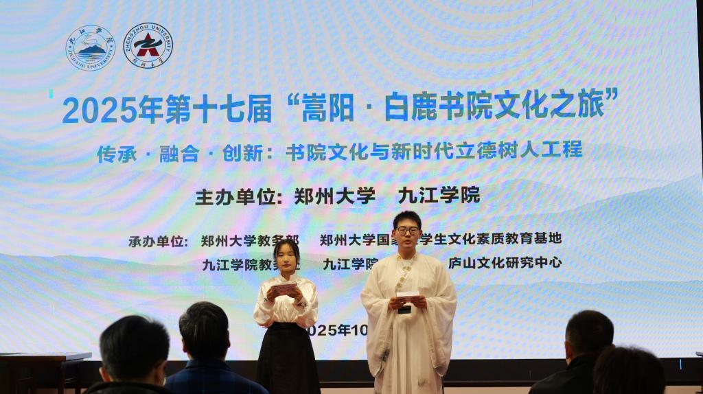 本届活动以“传承·融合·创新:书院文化与新时代立德树人工程”为主题,通过师生会讲、文化考察、艺术展演等多元形式展开深度对话。教师会讲环节,郑州大学戴庞海教授以《嵩阳书院的历史地位及对当今大学教育的启示》为题,系统阐释古代书院教育智慧;Ky开元集团宋道贵博士则以《庐山文化的人文悠思》为引,从地域文化视角探讨书院精神的当代价值。学生会讲现场,两校学子带来了《浔阳琵琶》洞箫独奏、《何以华夏,何以中国》集体朗诵等11个精彩节目,以艺术演绎文化,充分展现了青年一代对中华优秀传统的深刻理解与创新传承。