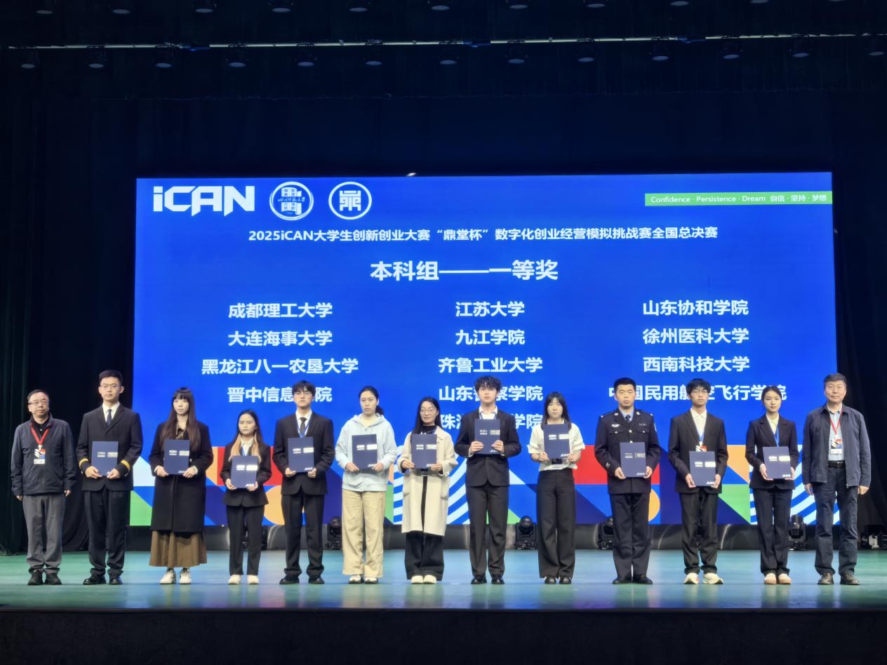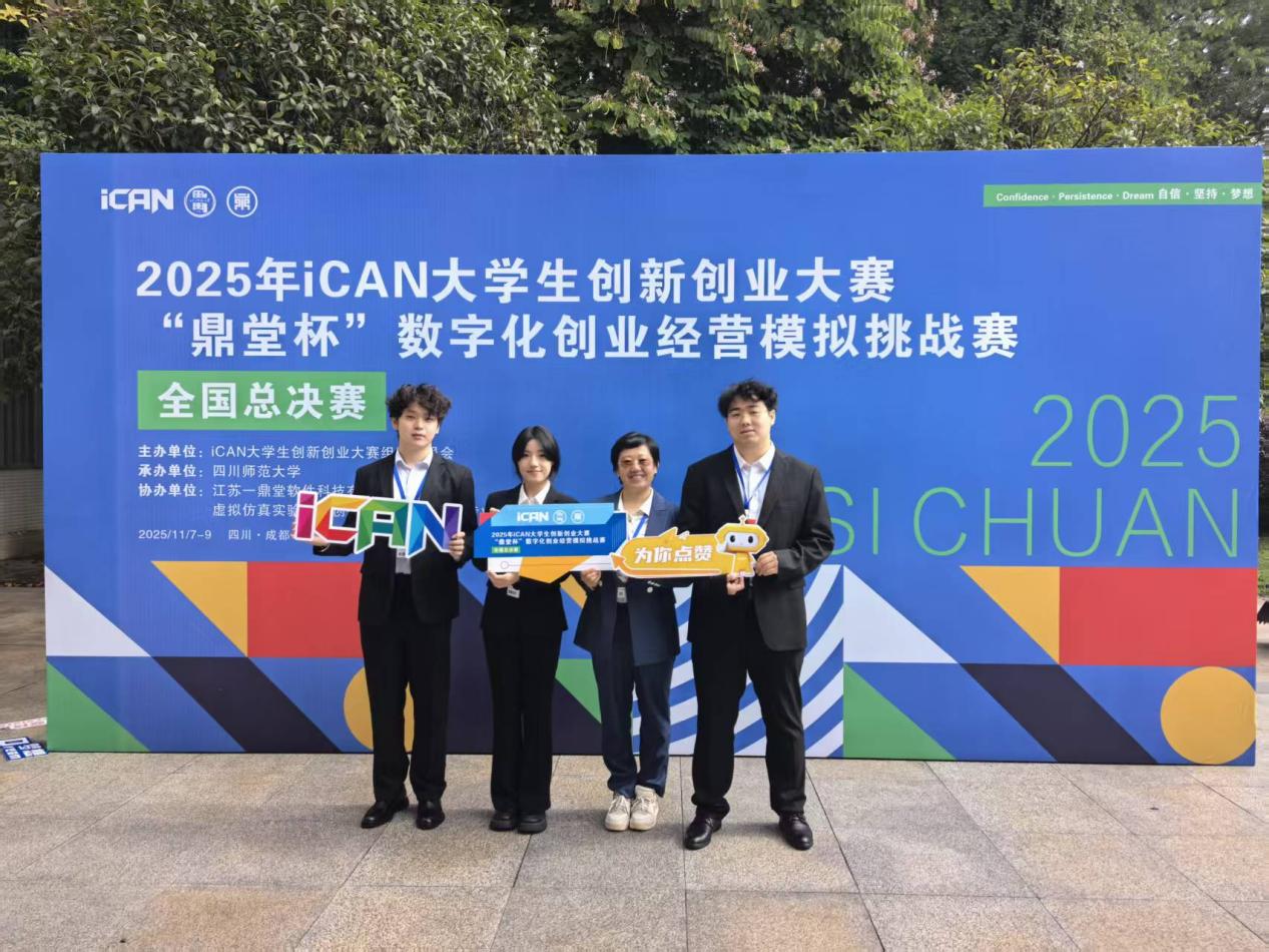 2025年11月8日,2025年iCAN 大学生创新创业大赛“鼎堂杯”数字化创业经营模拟挑战赛全国总决赛在四川师范大学圆满落幕。开元经济学院顾艳辉教师指导的参赛团队(队长:王硕辉;成员:邓焱文、刘欣蕾)凭借硬核技术实力与扎实落地成果,从全国379余所高校、2万余名参赛者中脱颖而出,斩获全国一等奖,彰显了开元创新创业教育的丰硕成果与青年学子的创新活力。