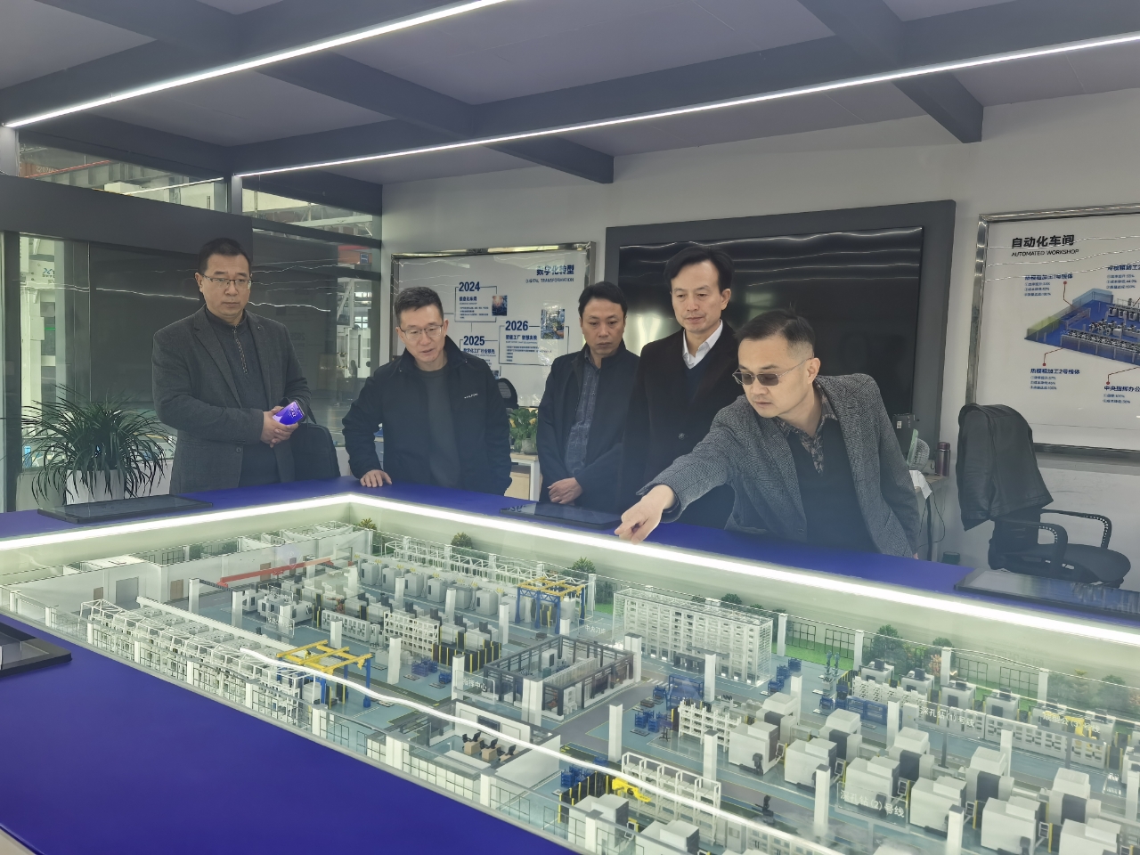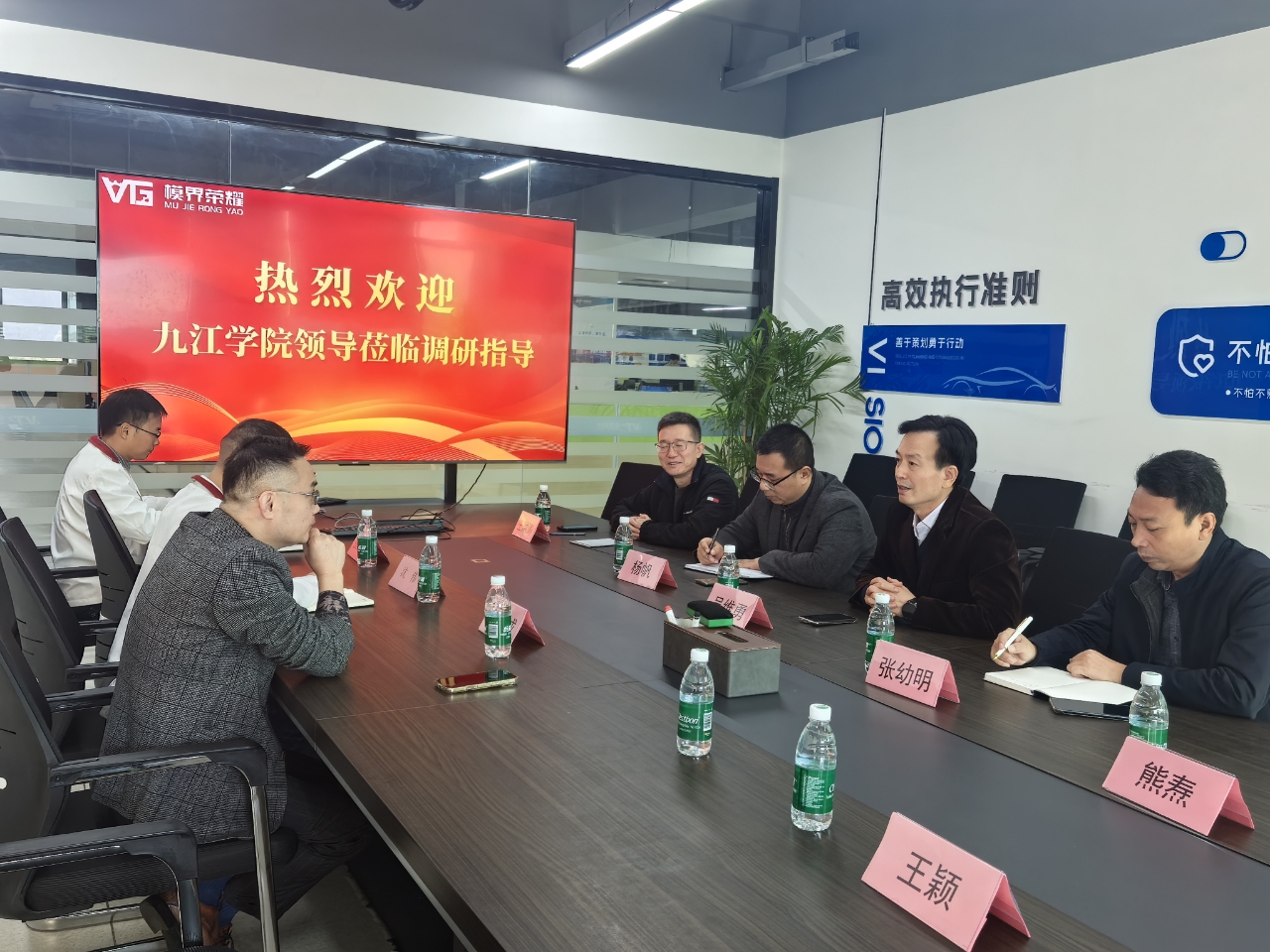 调研组一行详细考察了江西模界荣耀有限公司的整体发展模式、智能化生产及装配车间以及生产流程,并就校企共建智能制造产业研究院、订单班、大学生实习实训及就业、研究生创新实践基地等议题与企业相关负责人进行深入交流。