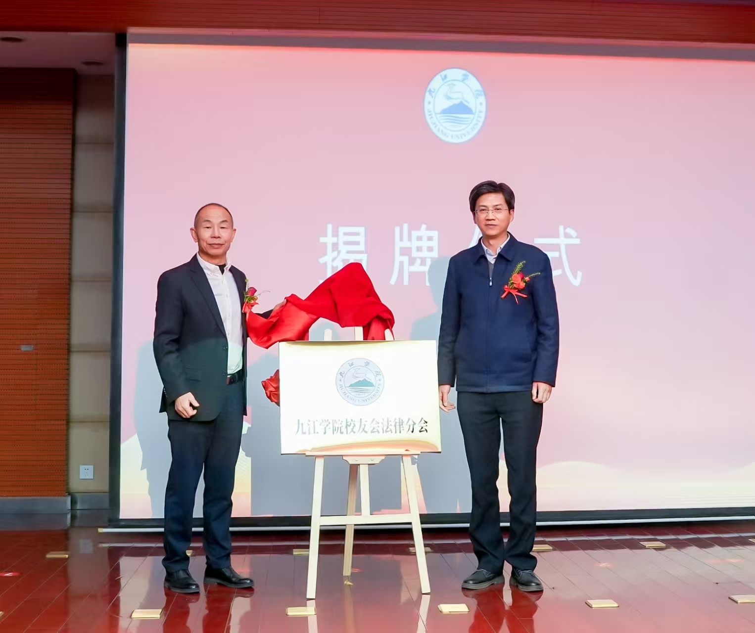 成立仪式上,学校、九江校友会分别与法律分会互赠纪念礼品。