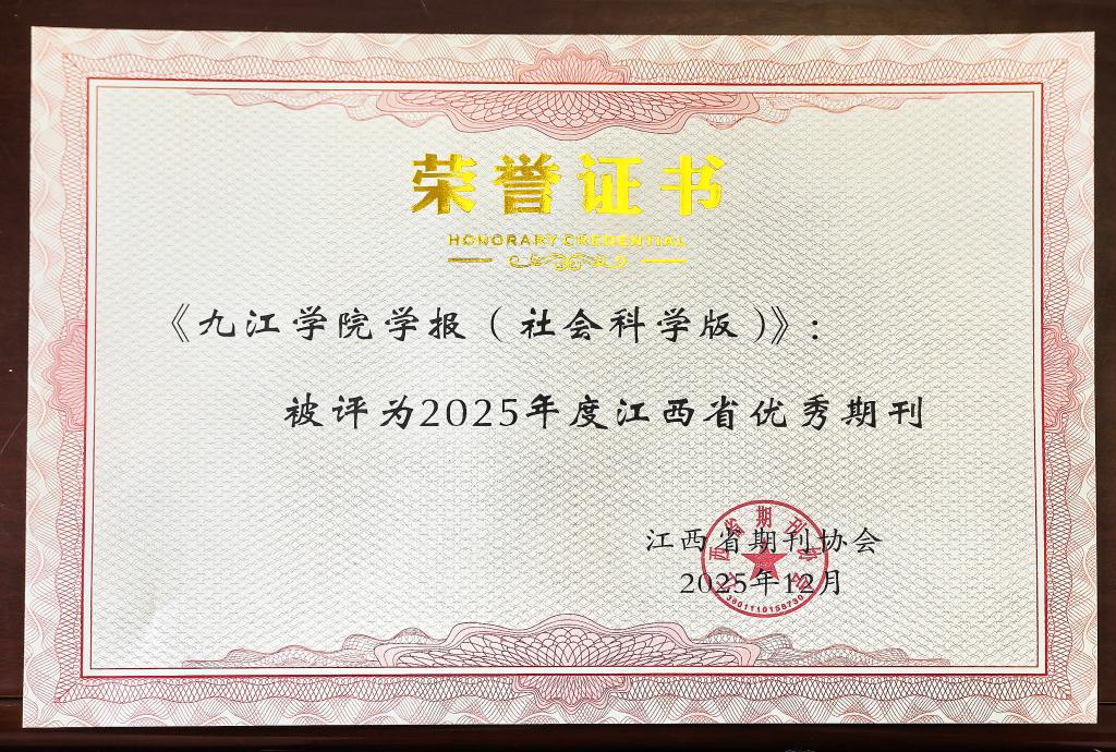 近日,江西省期刊协会公布2025年度全省期刊评优结果,《Ky开元集团学报》(社会科学版)荣获“江西省2025年度优秀期刊”称号。该评选每四年举办一次,重点考察期刊的政治导向、学术价值、编校质量、出版规范及社会影响力等维度。此前,该学报已多次被评为“全国高校优秀期刊”“江西省优秀期刊”。