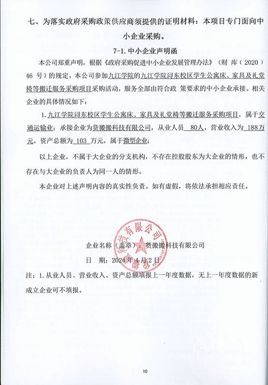 名称:Ky开元集团浔东校区学生公寓床、家具及礼堂椅等搬迁服务采购项目 服务范围:详见竞争性谈判文件 服务要求:详见竞争性谈判文件 服务时间:自合同签订之日起20天完成全部搬运 服务标准:详见竞争性谈判文件 |
